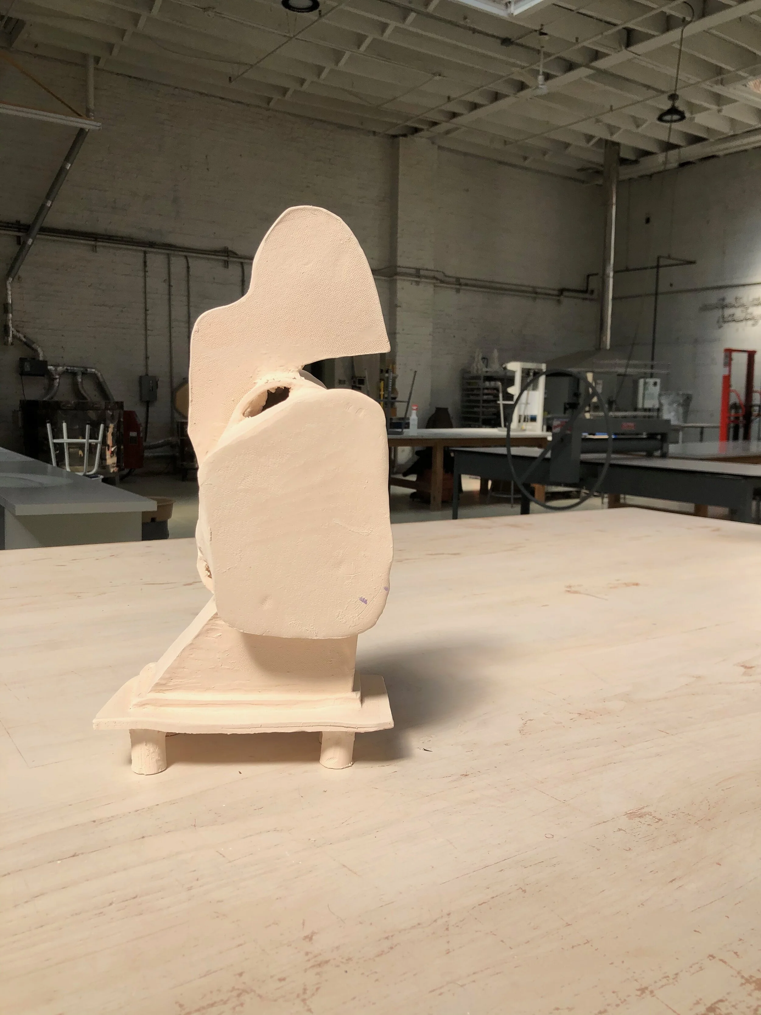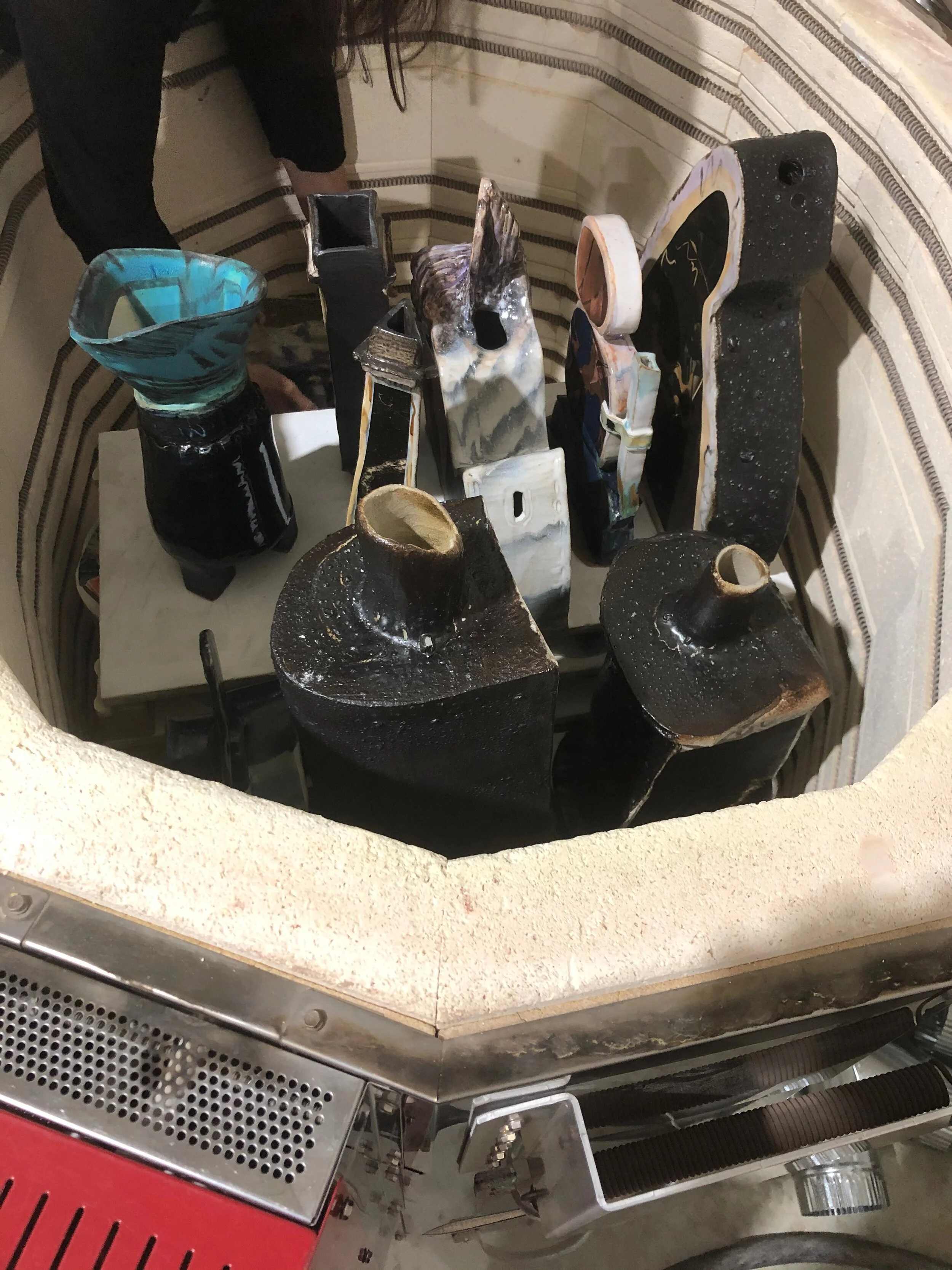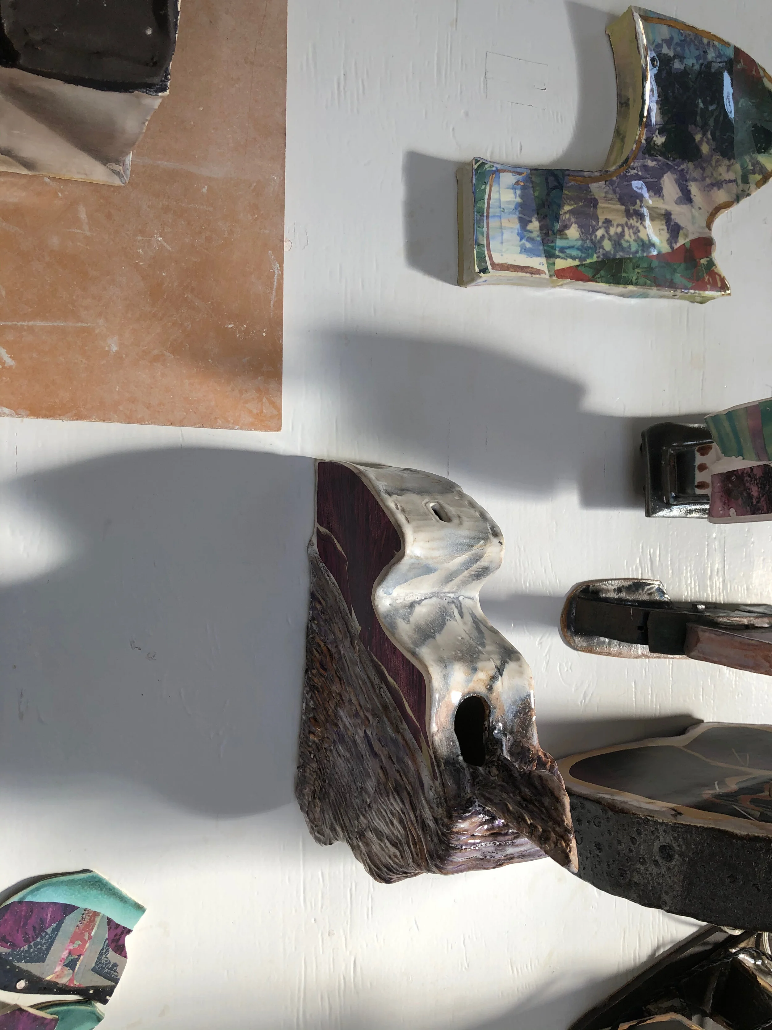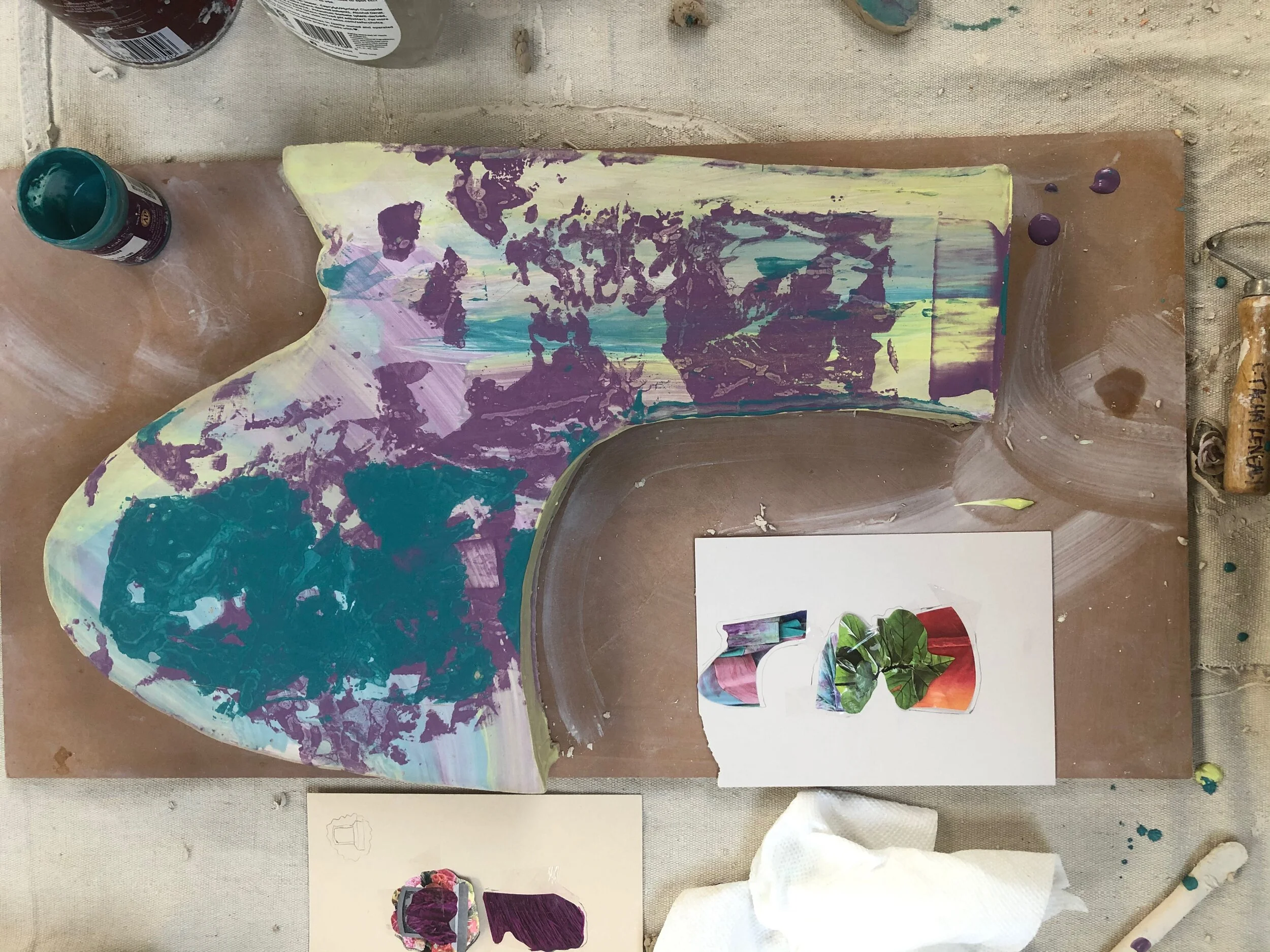 The collages are then translated from two dimensions into three dimensional clay objects made by hand that allow clay, glaze and materiality to exist in harmony. Inspired by the imbued action and emotion that the combination of clay and image create, the piece becomes exactly what it was meant to be.